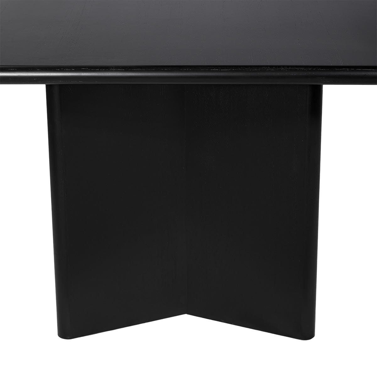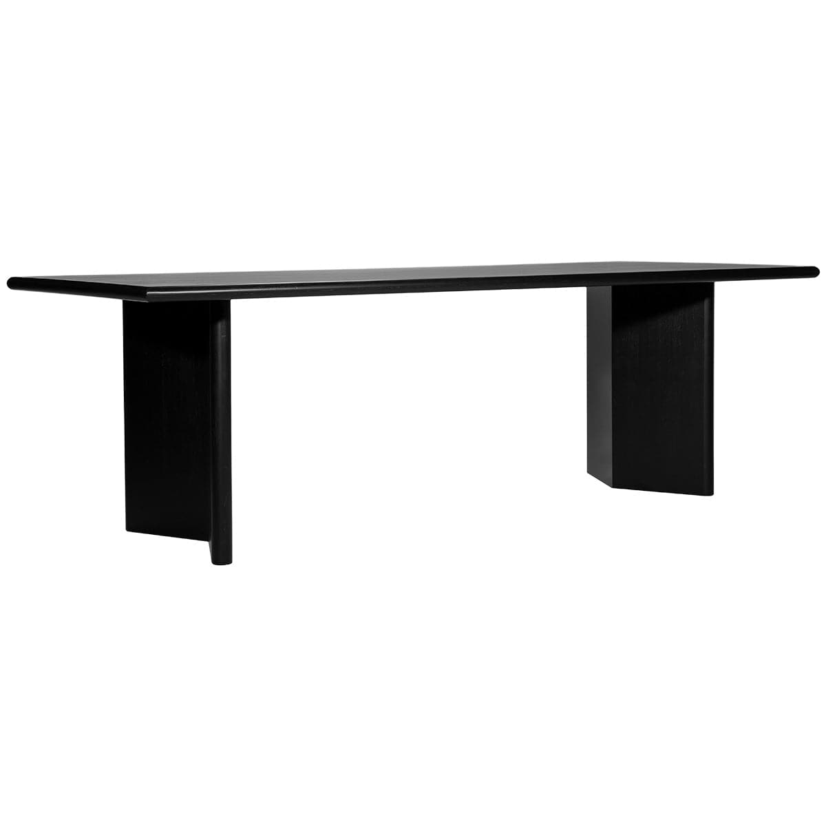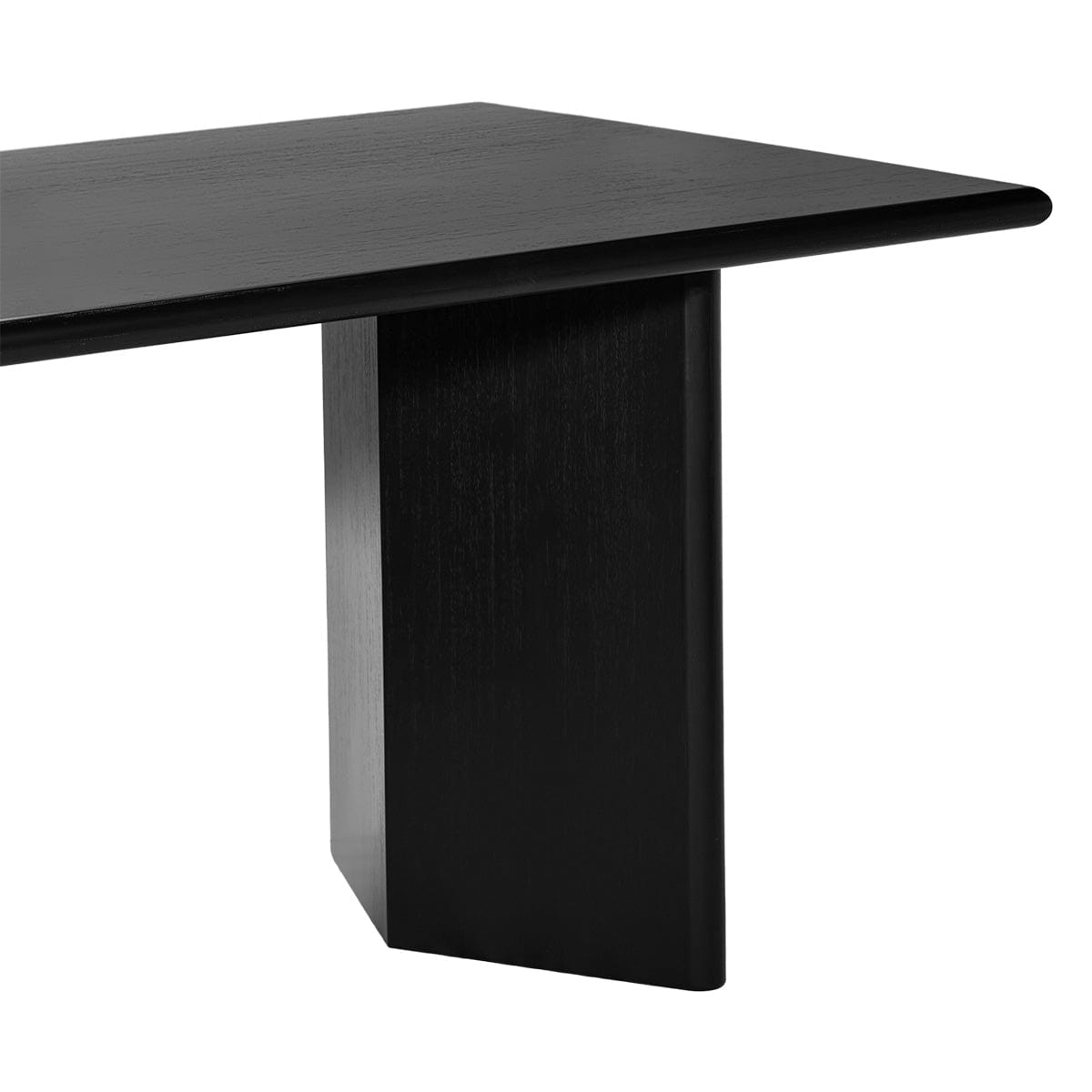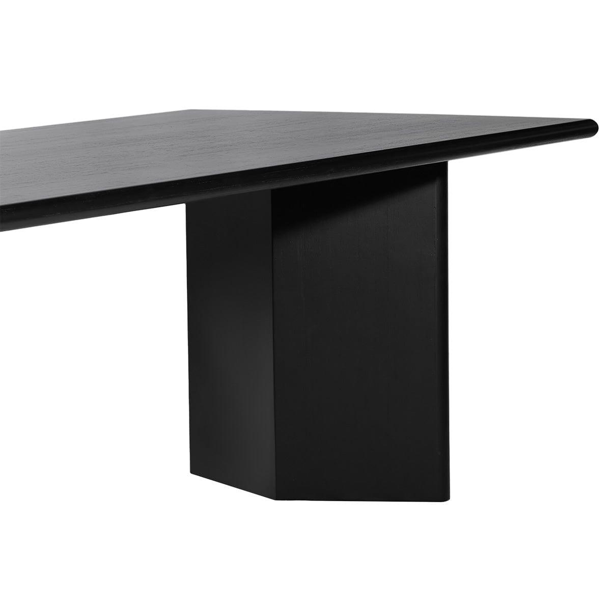 This elegant 2.4m dining table, crafted with brushed Acacia wood veneer, is painted in sophisticated black. Designed to comfortably seat 8-10 guests, its minimalist form with soft edges and geometric legs provides both style and stability. Ideal for contemporary interiors, this versatile table enhances dining spaces with a refined aesthetic, making it an excellent choice when seeking functional and timeless furniture pieces.