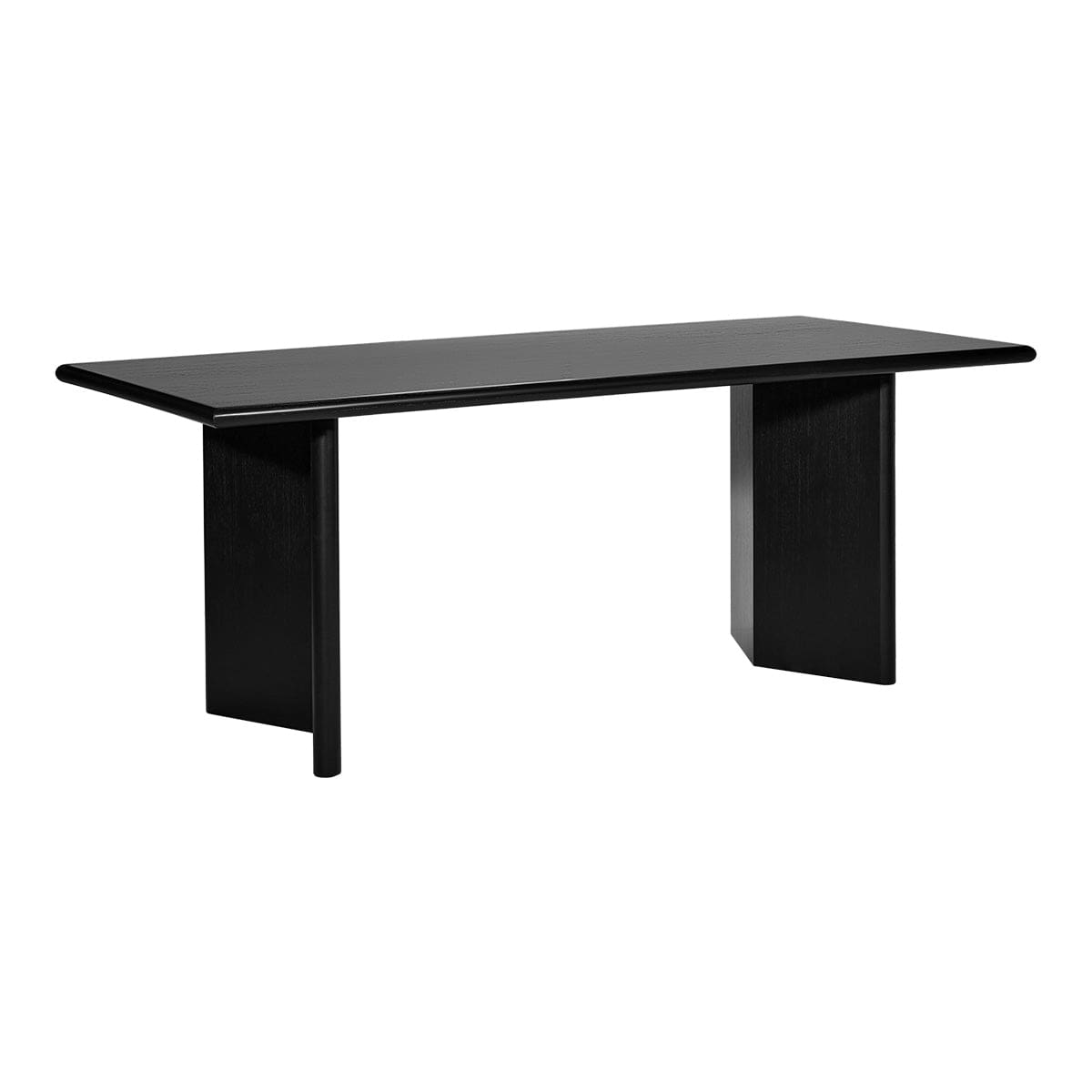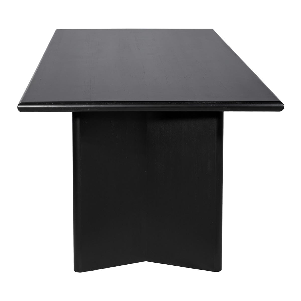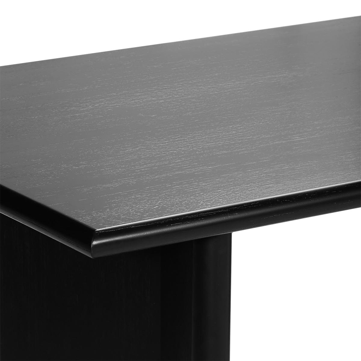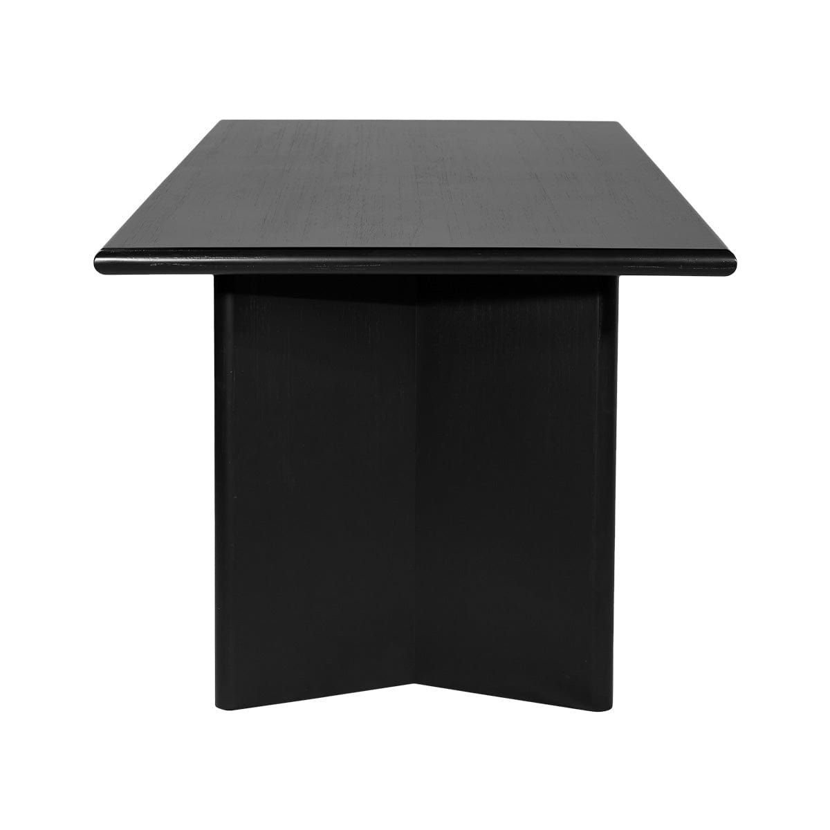 This elegant 2.4m dining table, crafted with brushed Acacia wood veneer, is painted in sophisticated black. Designed to comfortably seat 8-10 guests, its minimalist form with soft edges and geometric legs provides both style and stability. Ideal for contemporary interiors, this versatile table enhances dining spaces with a refined aesthetic, making it an excellent choice when seeking functional and timeless furniture pieces.