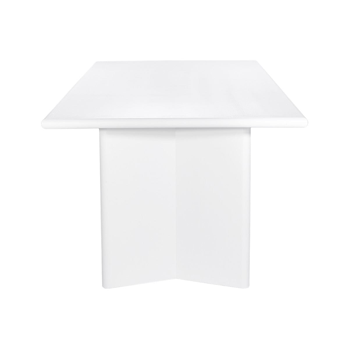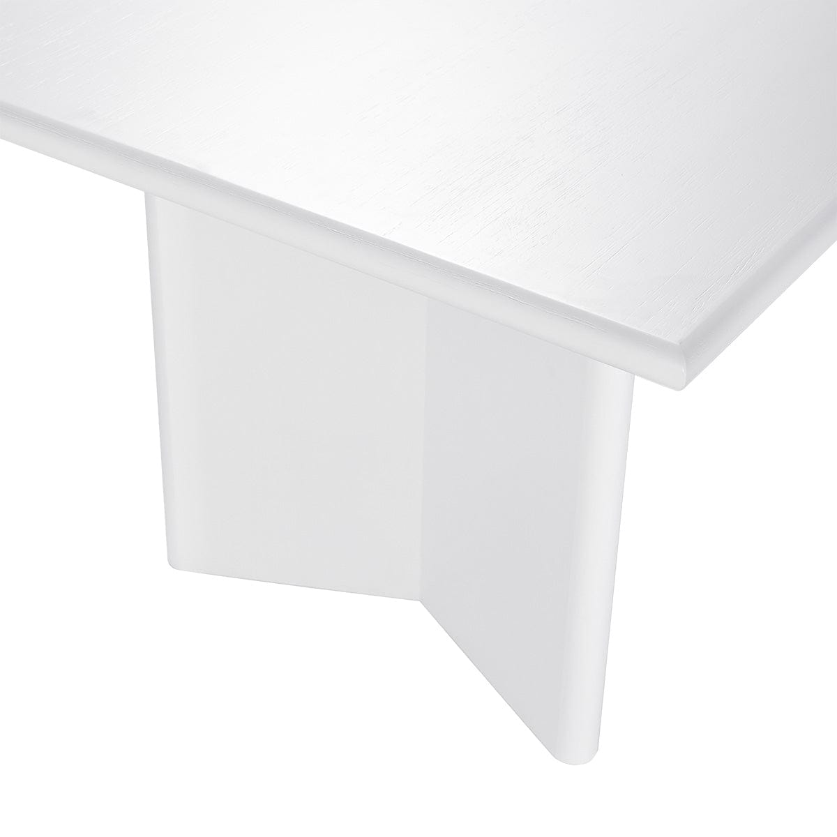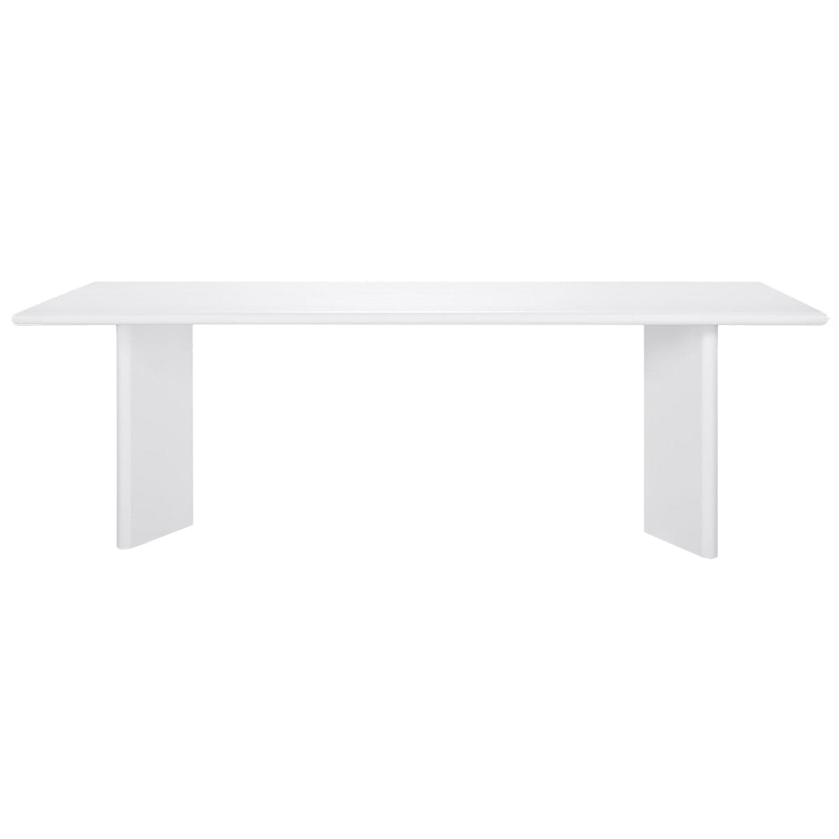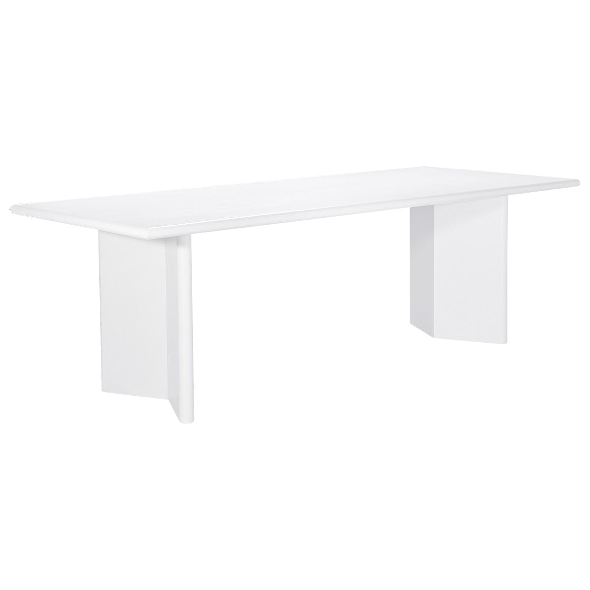 This elegant 2.4m dining table, crafted with brushed Acacia wood veneer, is painted in sophisticated black. Designed to comfortably seat 8-10 guests, its minimalist form with soft edges and geometric legs provides both style and stability. Ideal for contemporary interiors, this versatile table enhances dining spaces with a refined aesthetic, making it an excellent choice when seeking functional and timeless furniture pieces.