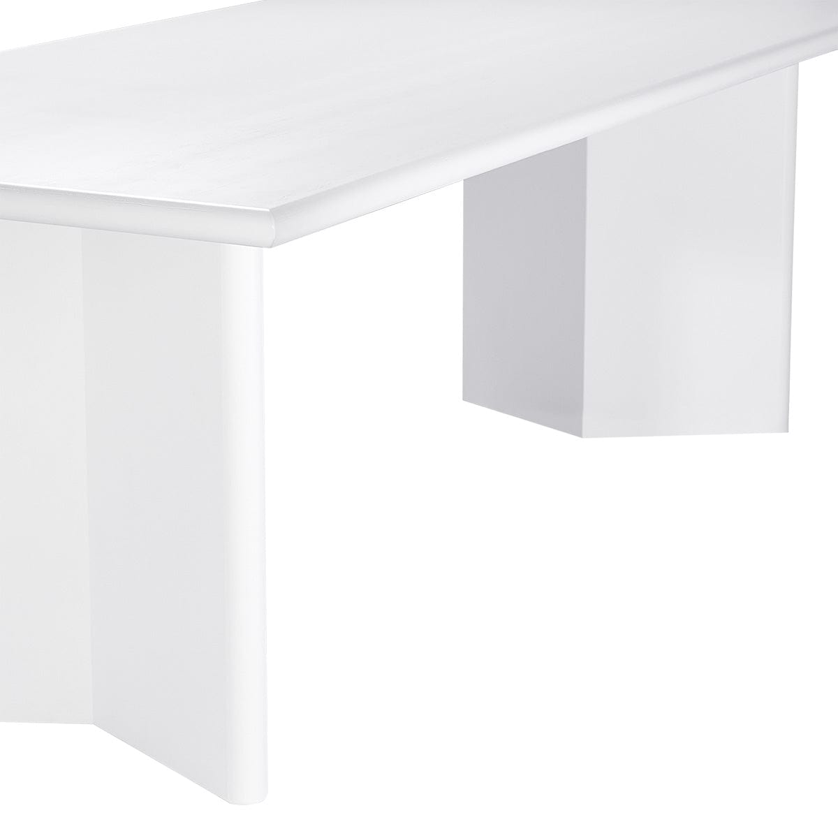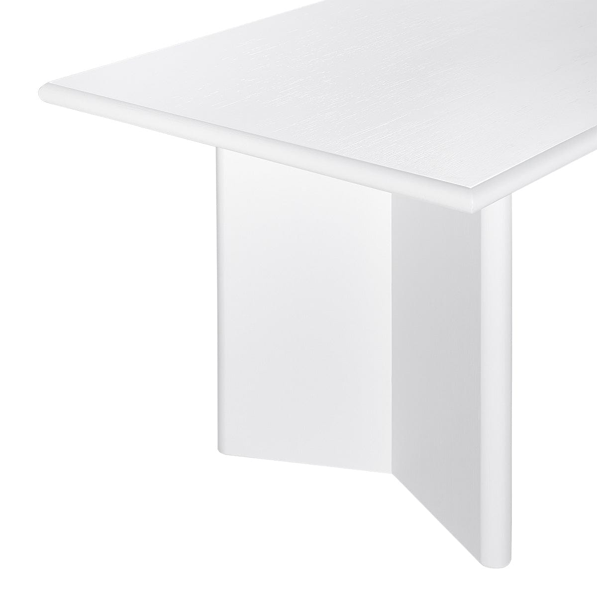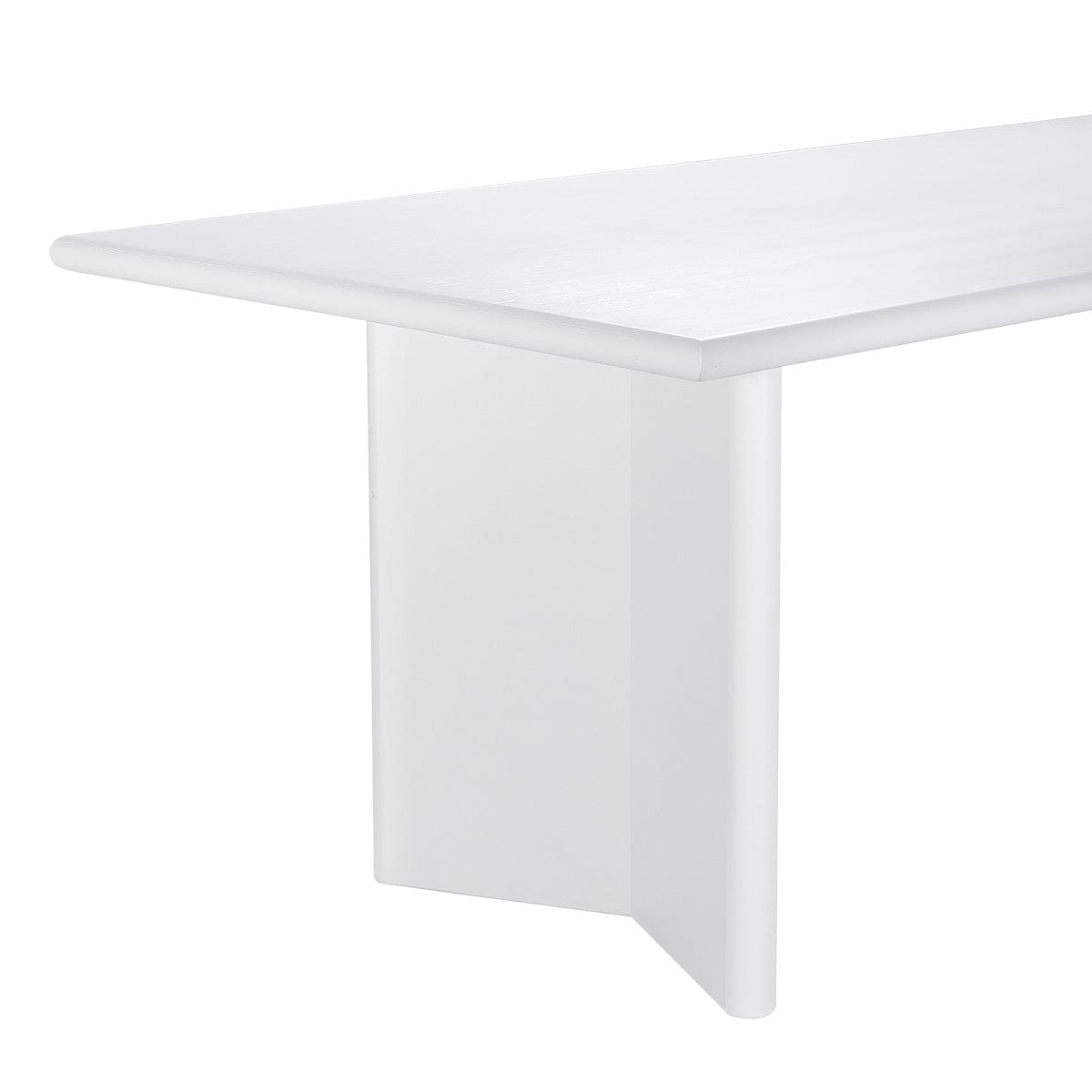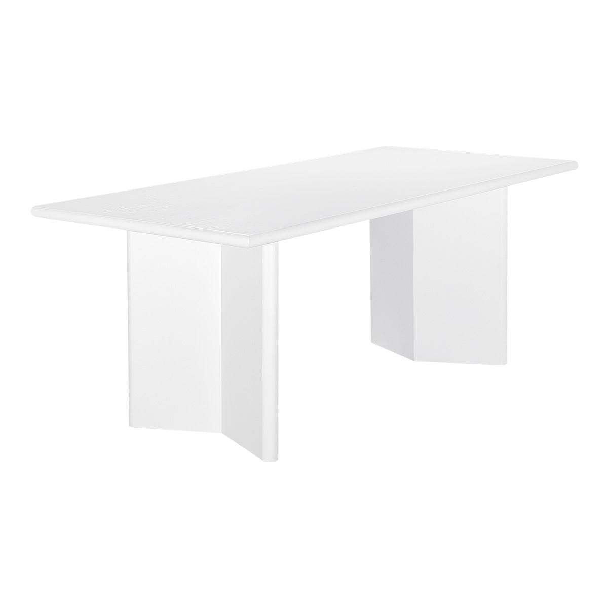 This elegant 2.4m dining table, crafted with brushed Acacia wood veneer, is painted in sophisticated black. Designed to comfortably seat 8-10 guests, its minimalist form with soft edges and geometric legs provides both style and stability. Ideal for contemporary interiors, this versatile table enhances dining spaces with a refined aesthetic, making it an excellent choice when seeking functional and timeless furniture pieces.