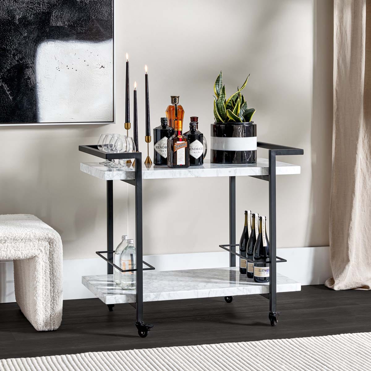 Franklin Marble Drinks Trolley – Gold Frame with White & Grey Marble