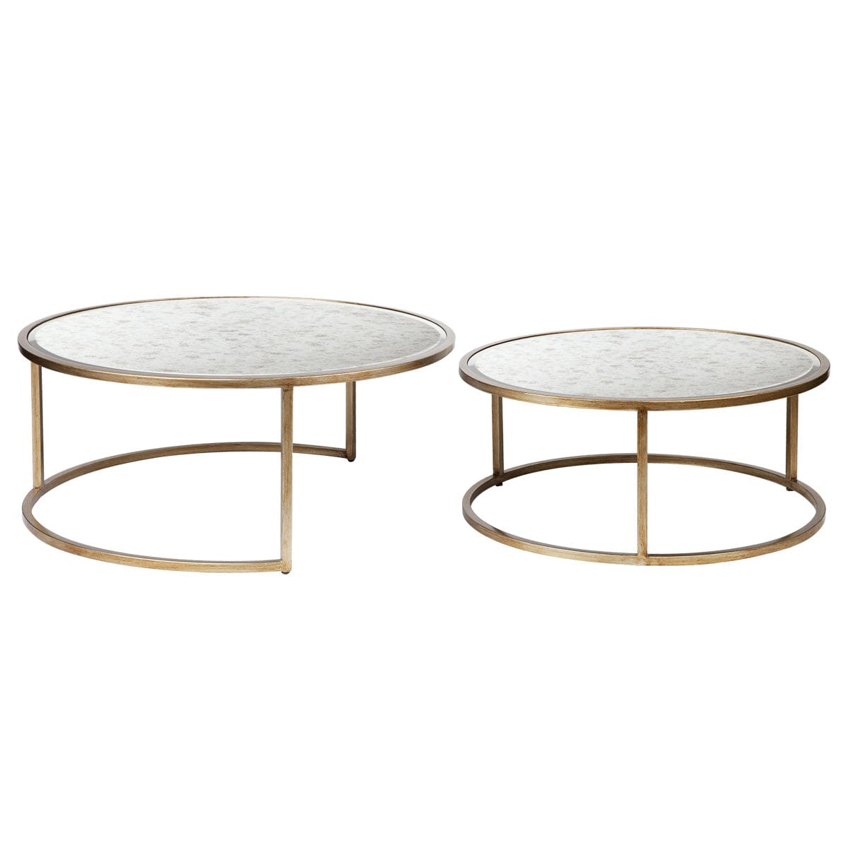 Serene Nesting Coffee Tables – Antique Gold or Black Frame & Mirrored Tops