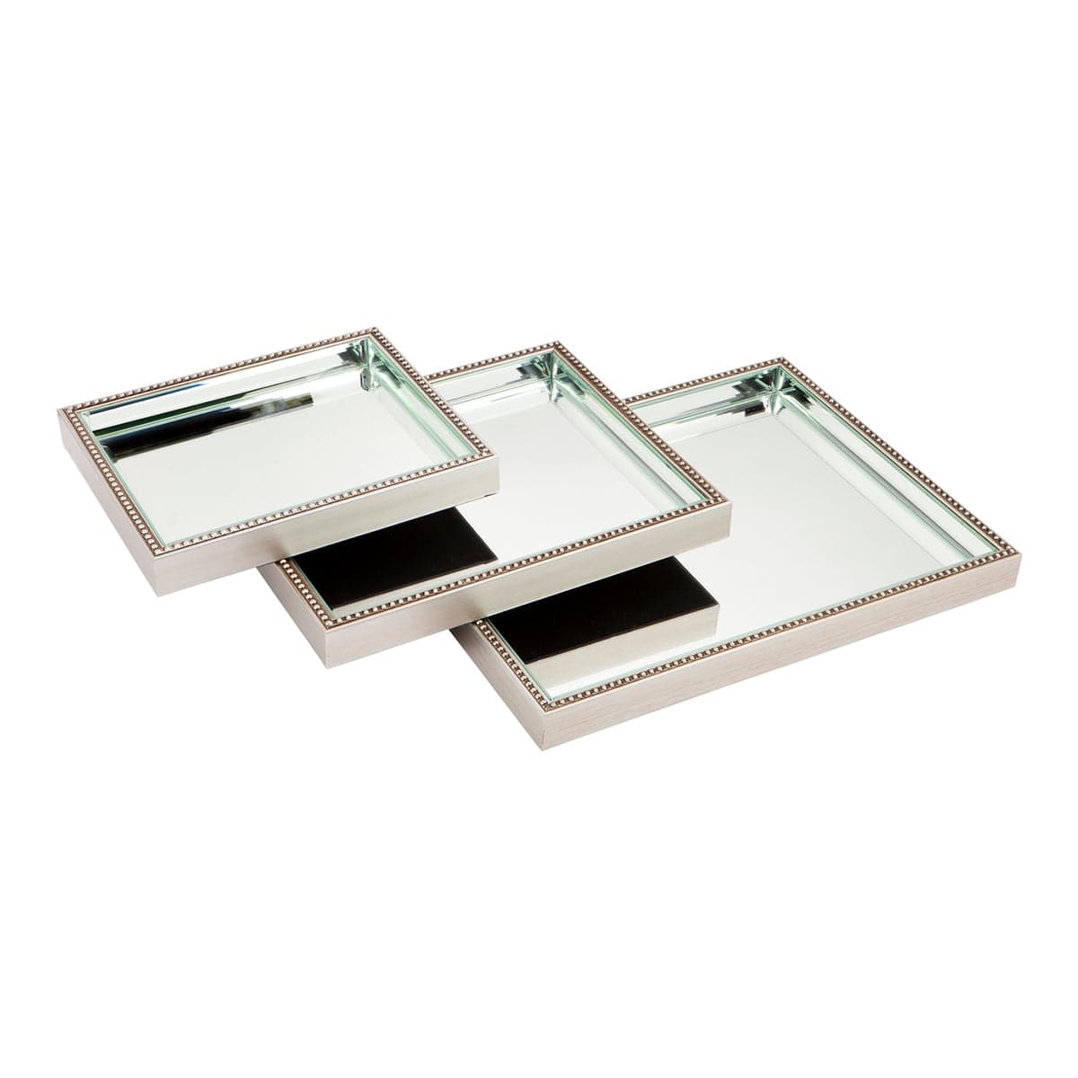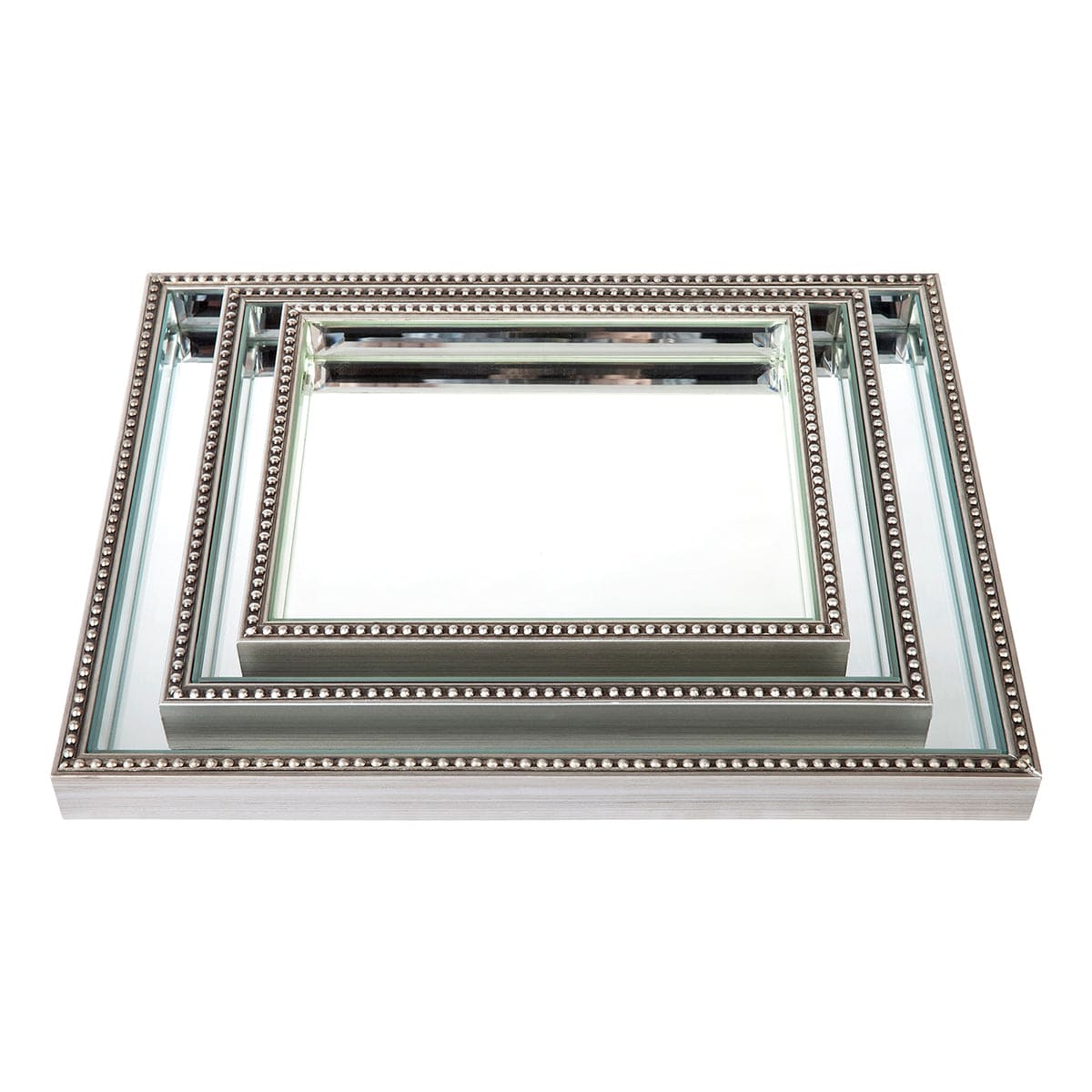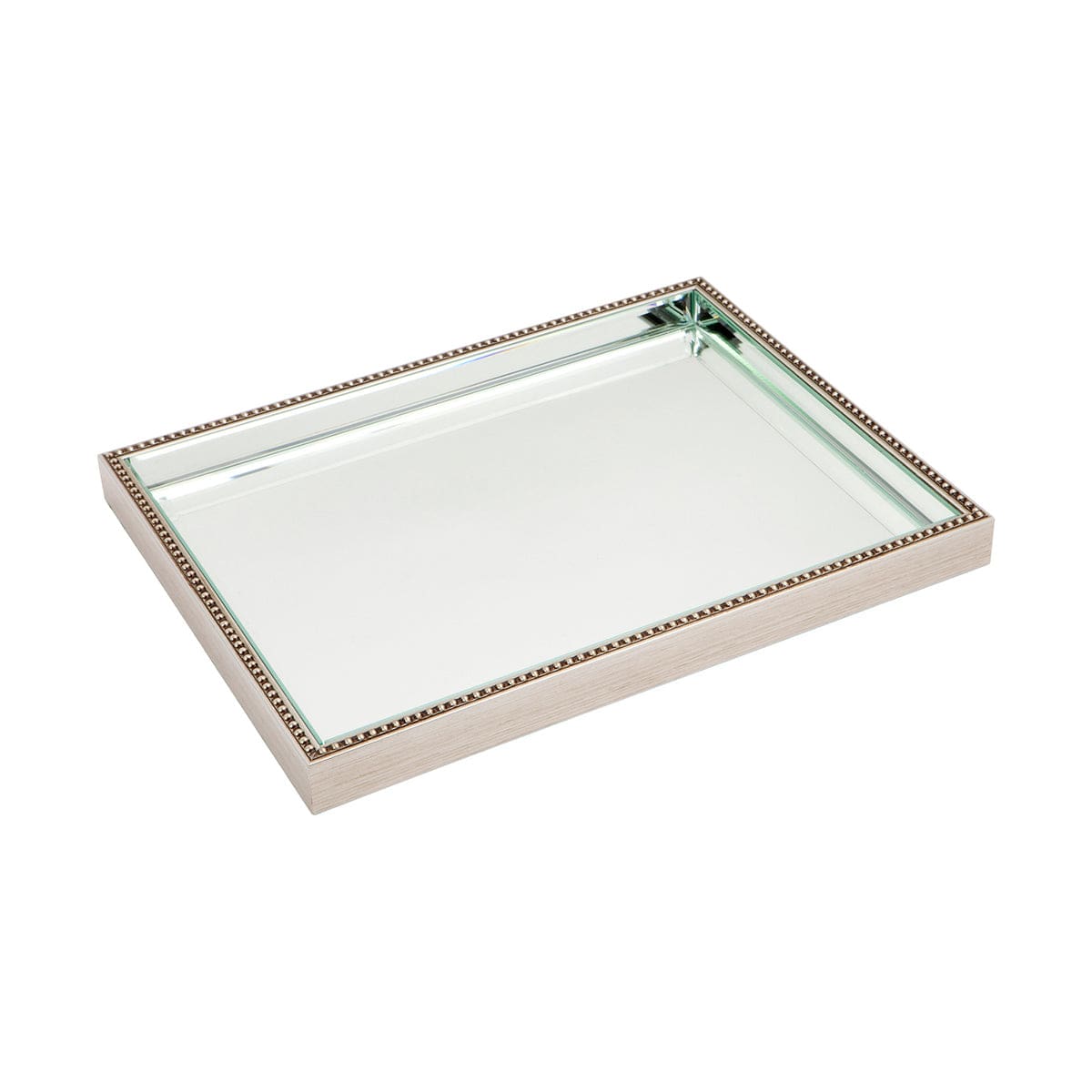 Home Shop Decor Zeta Mirror Tray - Antique Silver Beaded Rectangular Frame Bevelled Mirror Glass Design