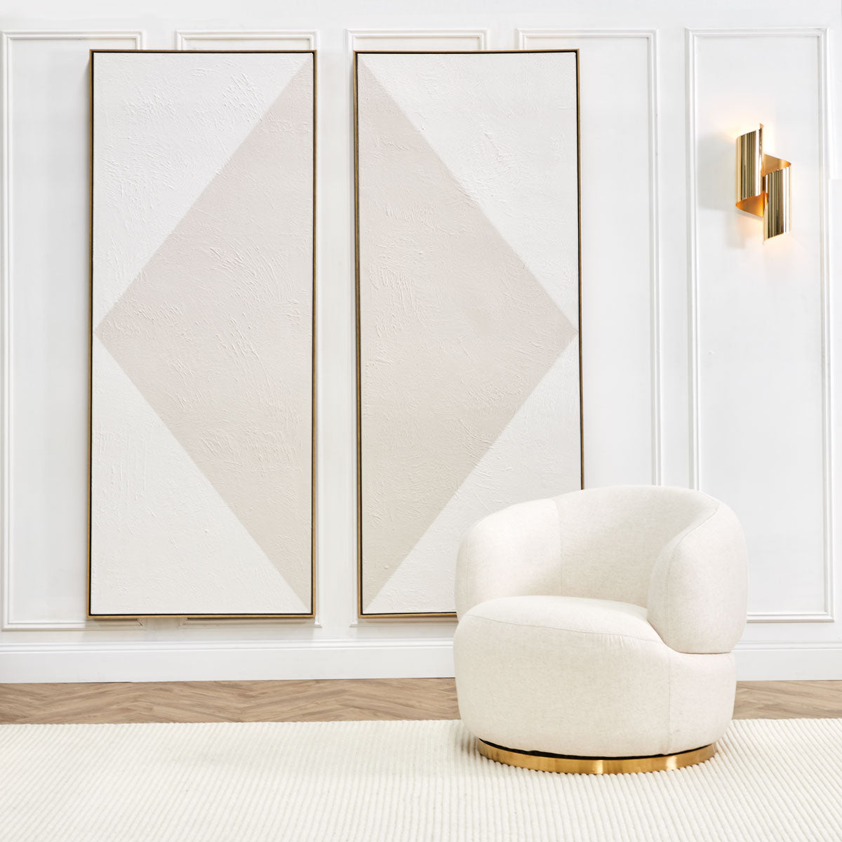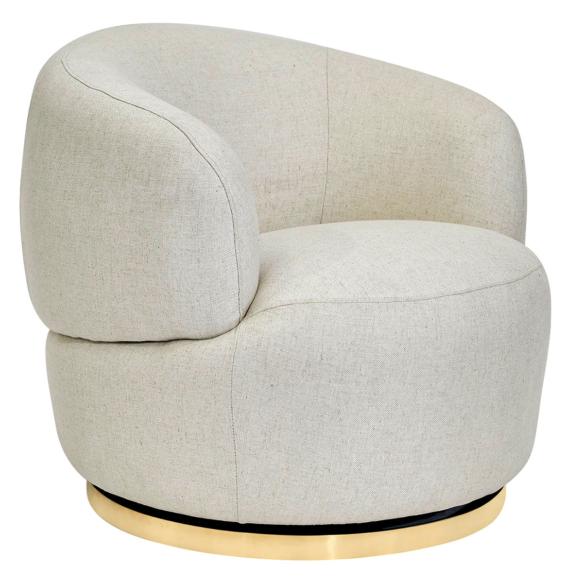 The Tubby swivel arm chair airs a refined sophistication that has been inspired by mid-century modern design. The epitome of luxury, Tubby offers the ultimate in curve appeal. Its comfortable embrace is only matched by its practical swivel action encased in an elegant antique brass finished plinth. Upholstered in a natural linen viscose fabric, its contemporary curves and sleek tailored finish resonate with ongoing trends and infuse any interior with enviable style. Also available in ivory boucle and caramel velvet.
