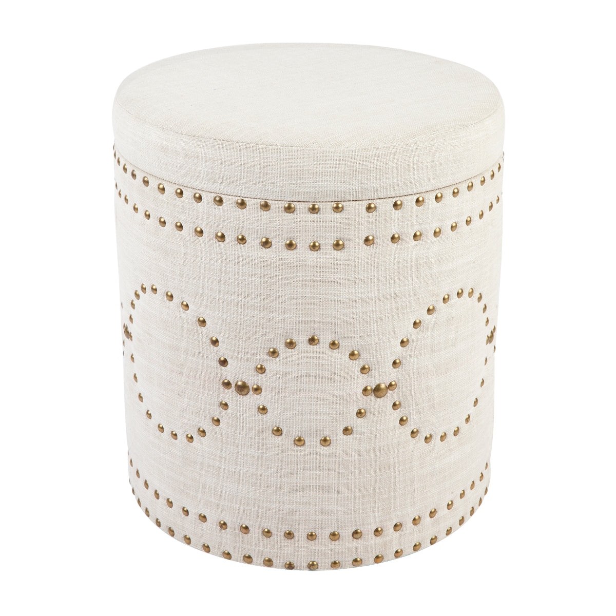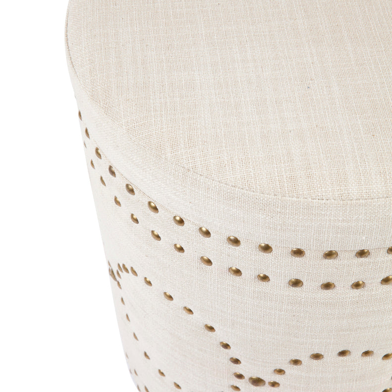 Bradshaw Round Storage Stool – Natural Linen with Bronze Studs