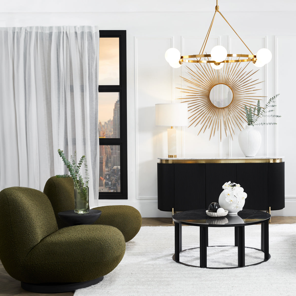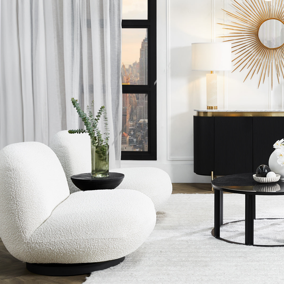 Felicity Swivel Occasional Chair - Green or Ivory Boucle Upholstery on Black Base