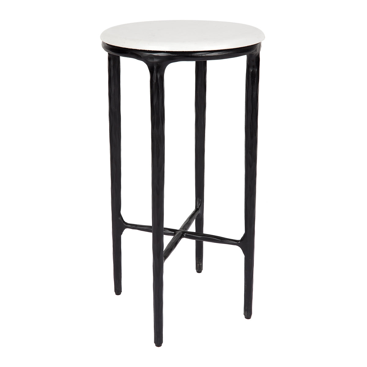 Timelessly elegant, our Heston collection merges rustic sensibility of a hand forged iron frame with a rich counterpoint of organically smoothed white marble, sourced from Greece. The fine and elegant silhouette of this design allows for practical adaptability to create a sense of air in your space. Individually hand crafted by artisans to reveal an imperfect texture, create symmetry with coordinating side tables in your living space or bedroom, or create a single statement to your armchair.