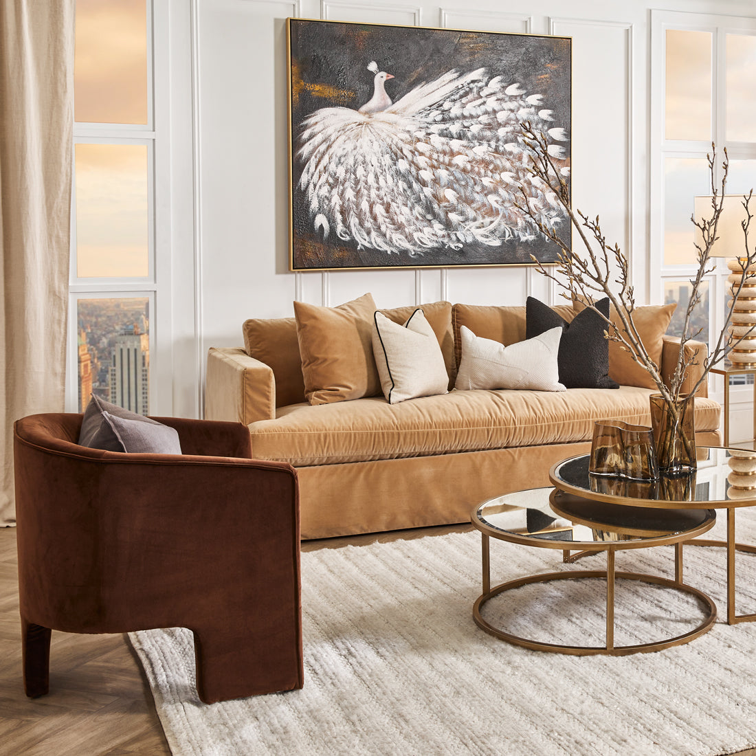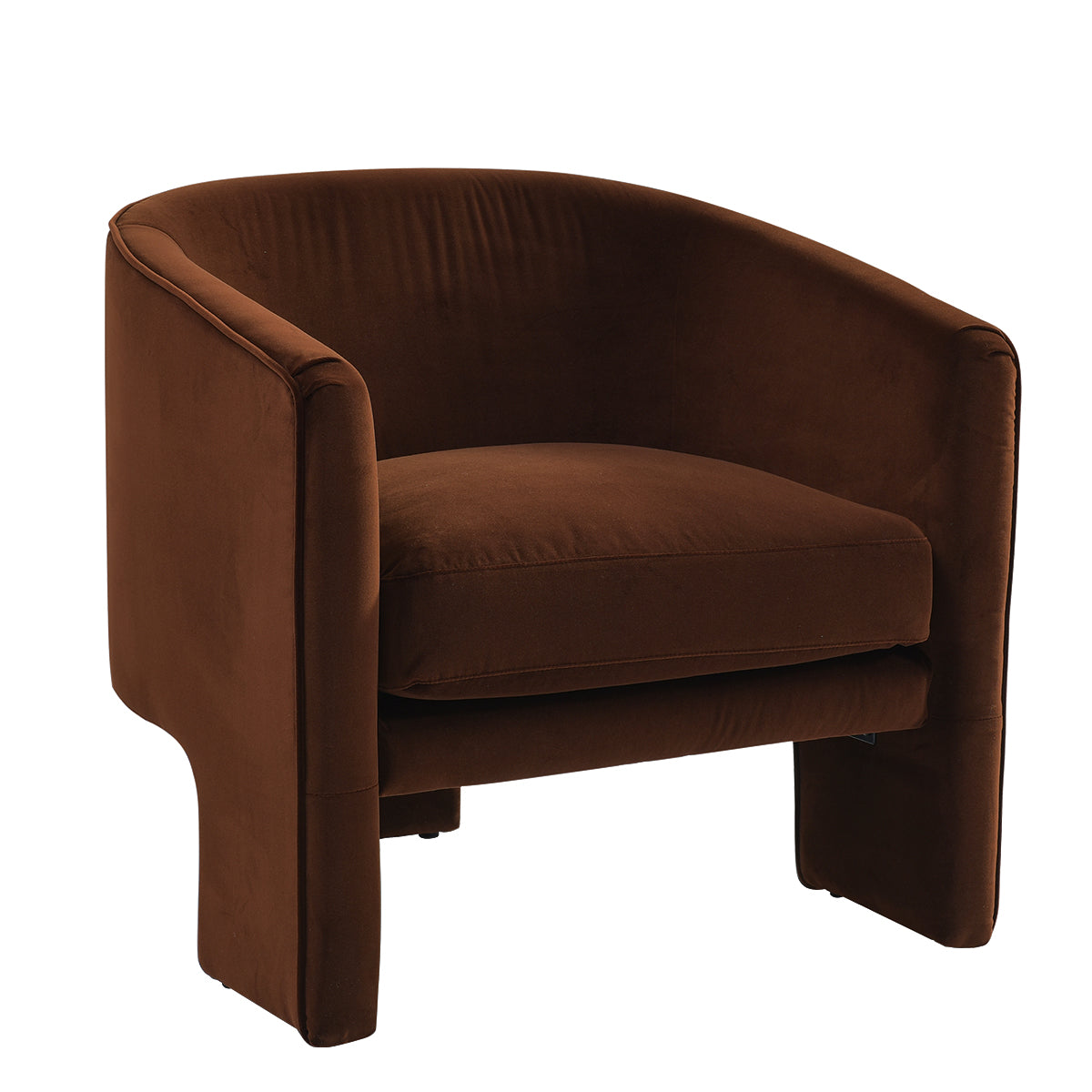 Upholstered in white bouclé or rich dark chocolate velvet, the Kylie Arm Chair combines mid-century modern sophistication with contemporary comfort. Its sleek curves, clean tailored lines, and detailed piping create a refined yet inviting aesthetic. Perfect for living rooms, bedrooms, or reading nooks, this statement piece adds elegance and personality to any space. Designed for both style and durability, the Kylie Arm Chair is a versatile choice that complements a wide range of interiors. Create a timeless, designer-inspired look with this iconic chair.