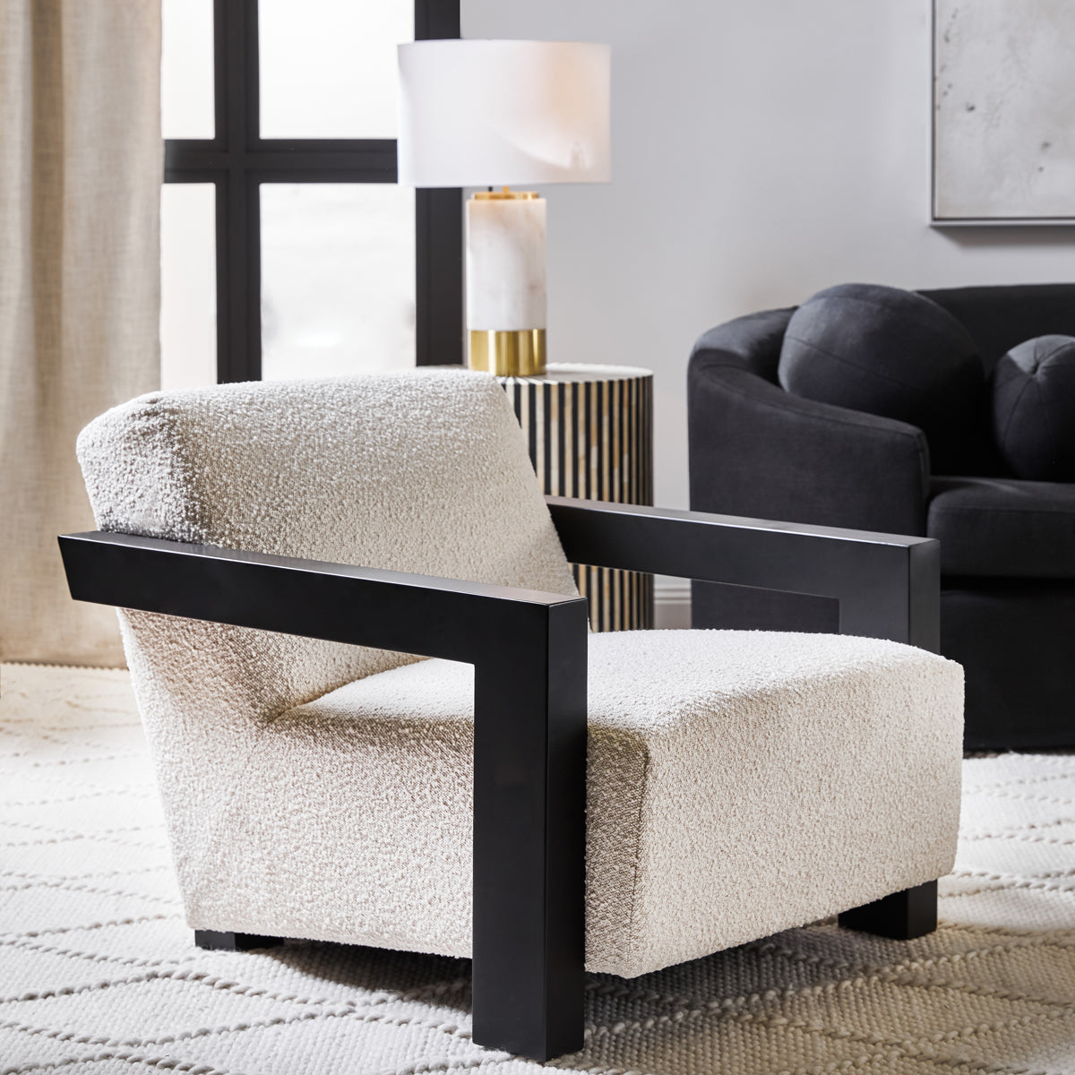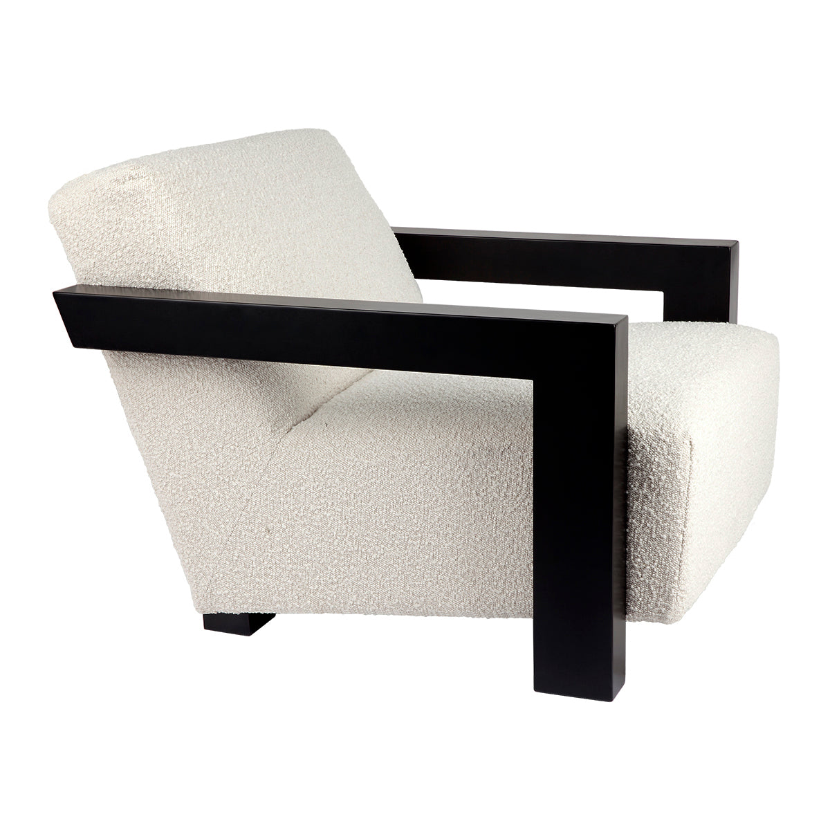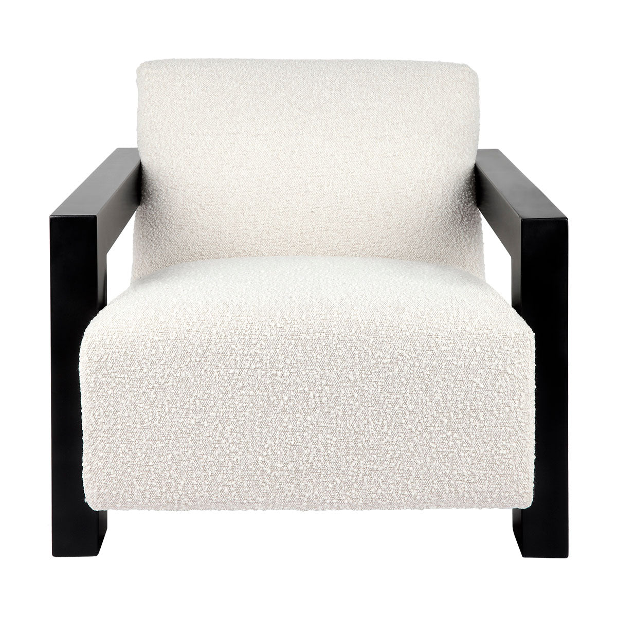 Lennon Ivory Boucle Arm Chair with Black Timber Arms