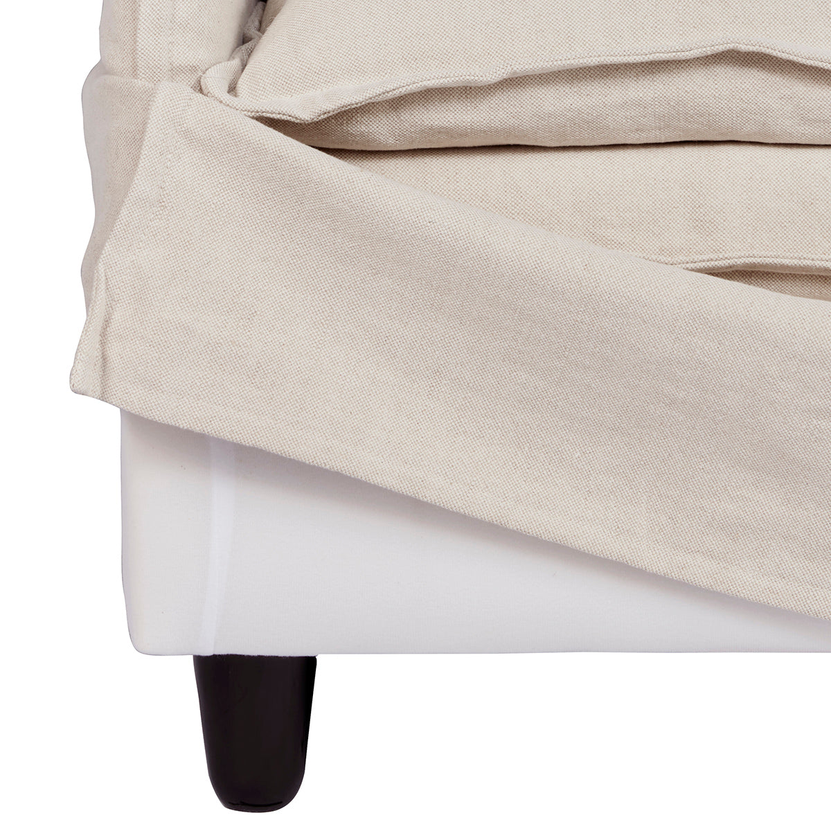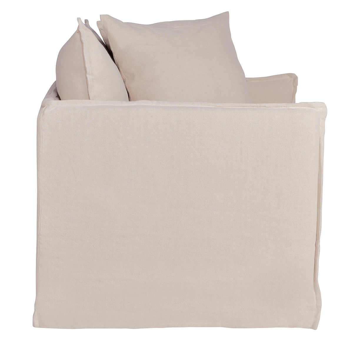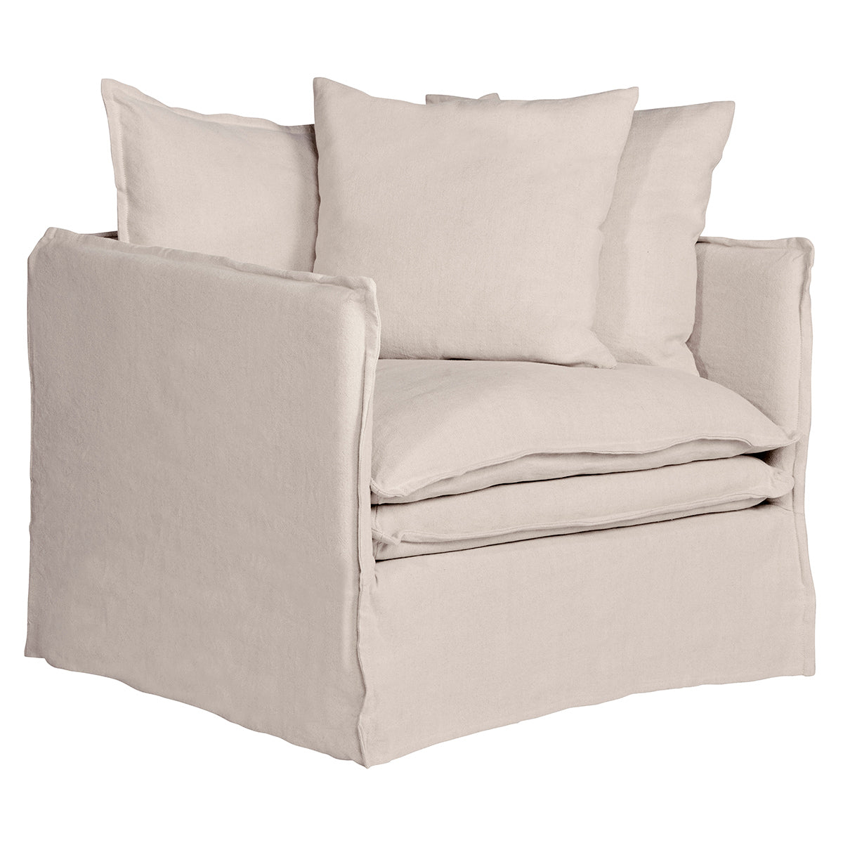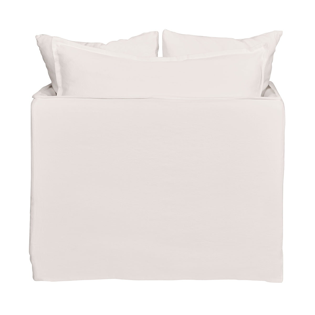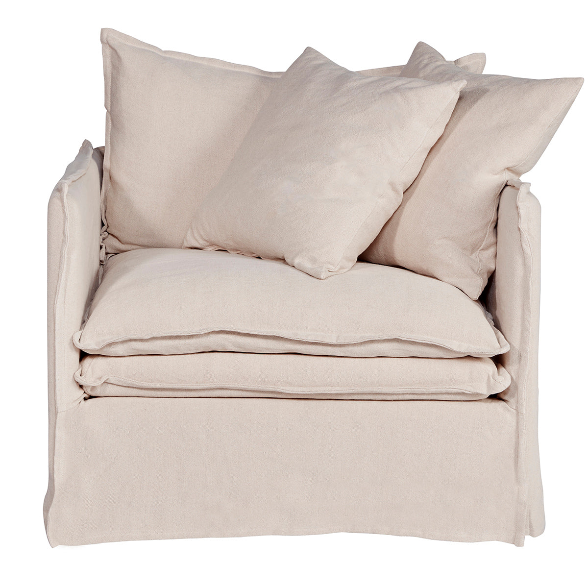 Experience the epitome of Hamptons-inspired luxury with our Palm Beach Arm Chair. Indulge in pure comfort with soft feather and foam-filled seating, ensconced within a robust hardwood frame. Seamlessly blending elegance with practicality, draped in pristine white linen, a harmonious blend of 50% cotton and 50% linen. Featuring removable covers for effortless maintenance and reversible cushions for enhanced adaptability, elevate your interior design with the exquisite sophistication of the Palm Beach collection, available in white, slate grey, or natural linen, with coordinating sofas to complete the look. Professional dry cleaning services only.