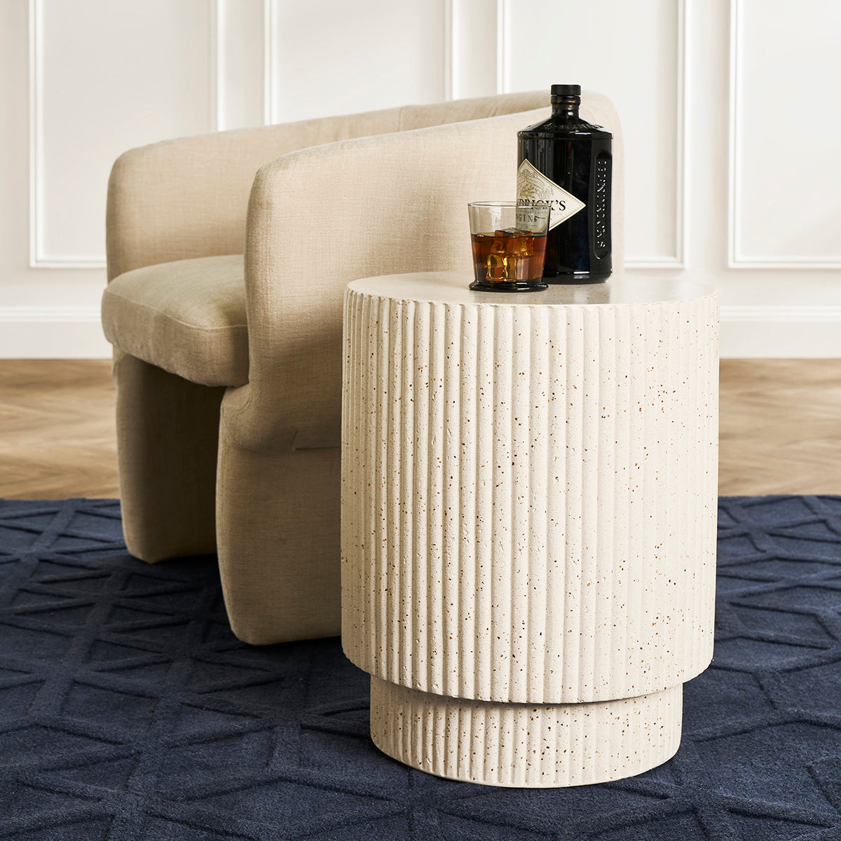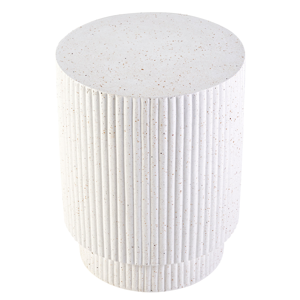 Elevate your interior with the fluted terrazzo Santorini Side Table, showcasing a striking textured design in crisp white with natural speckled details. Its cylindrical silhouette exudes modern elegance, making it a perfect accent piece for contemporary, minimalist, or Scandinavian-inspired interiors. Built for style and functionality, this durable side table adds depth and sophistication to your living space, complementing a wide range of decor styles effortlessly.