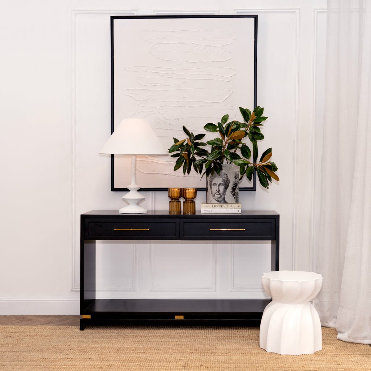Elegantly understated, the Blanquecina enhanced canvas print features a serene wash of white-on-white texture, bringing subtle depth and tranquility to any space. Encased in a sleek black shadow box frame, it delivers a striking contrast that enhances its minimalist appeal. Measuring 110 x 130cm, this artwork is perfectly scaled to create a calming focal point above a console, buffet, or in a living area. Its neutral palette ensures versatility, seamlessly blending into contemporary, coastal, or classic interiors.