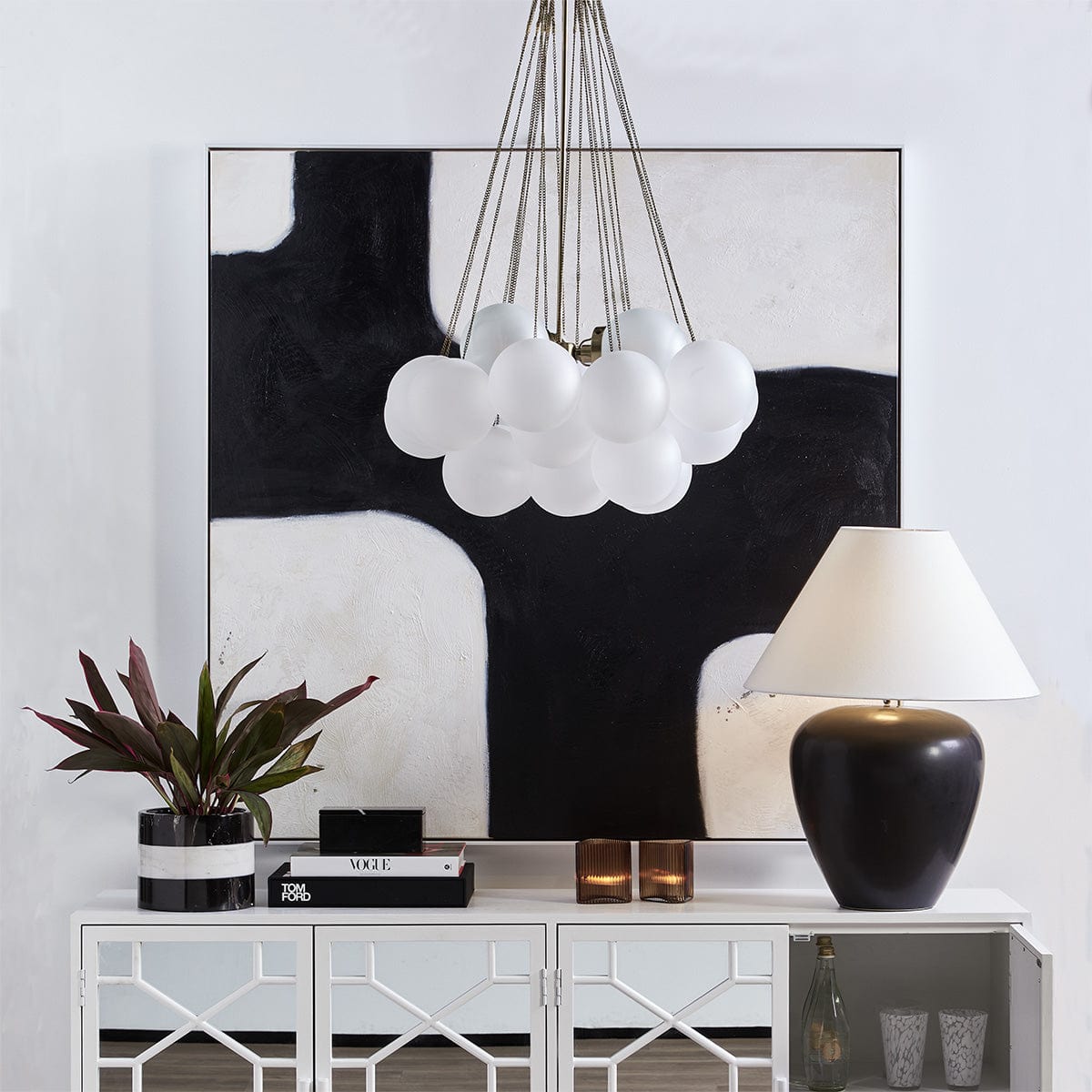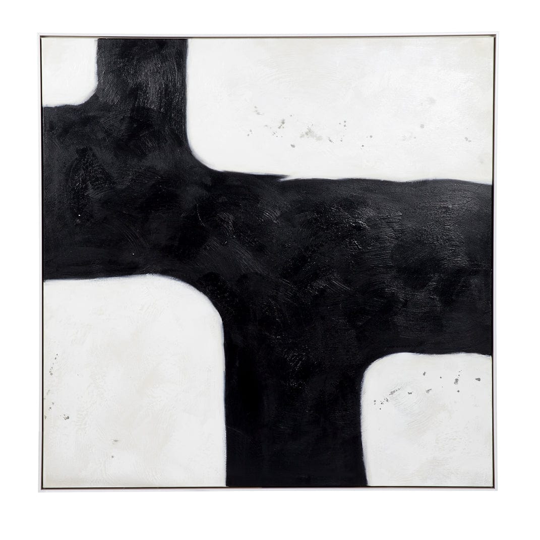 Symbolic of the Lower Manhattan streetscape, the Tribeca oil on canvas painting oozes contemporary cool with textured brush strokes and bold, elemental forms ensuring its urban appeal. Tribeca medium, at 100cm square, is mounted in a chic matt white shadow box frame, its monochromatic palette effortlessly co-ordinating with a majority of interiors. Also available in a larger 140cm format.