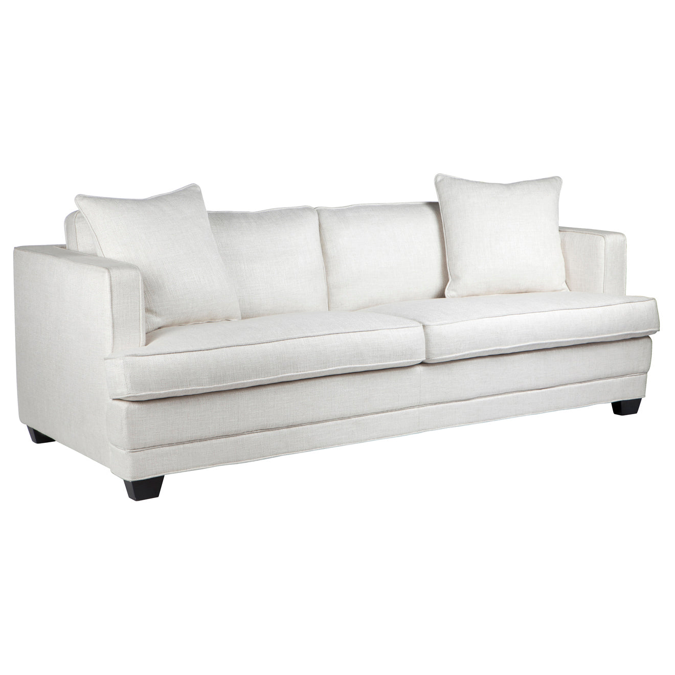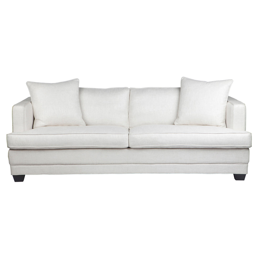 Experience the epitome of natural elegance with our upholstered 3-seater sofa. Impeccably detailed piping accentuates the beauty of this piece, while feather and foam seating offers unparalleled comfort. Complemented by sleek black timber legs, this sofa includes two scatter cushions filled with feather and foam, ensuring a harmonious blend of style and relaxation for your interior space.