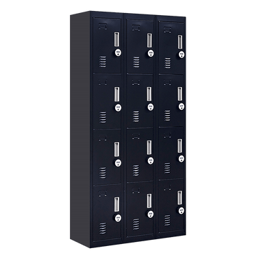 Offering secure storage for multiple users, this 12-door locker is ideal for offices, dormitories, gyms, spas, schools, and hospitals. Additional units can be added seamlessly to maintain a consistent appearance. Arranged in a 3 by 4 grid, each compartment provides generous space for personal belongings and supports up to 30 kg. Ventilation slits prevent odors, and a designated slot allows for personalised name tags or labels. Equipped with a 3-digit combination lock, it ensures your items remain safe. Measuring 180 x 90 x 36 cm, the locker is crafted from sturdy cold-rolled steel with a powder-coated finish for enhanced rust resistance and a sleek industrial look. Its straightforward assembly means it can be set up quickly and easily.