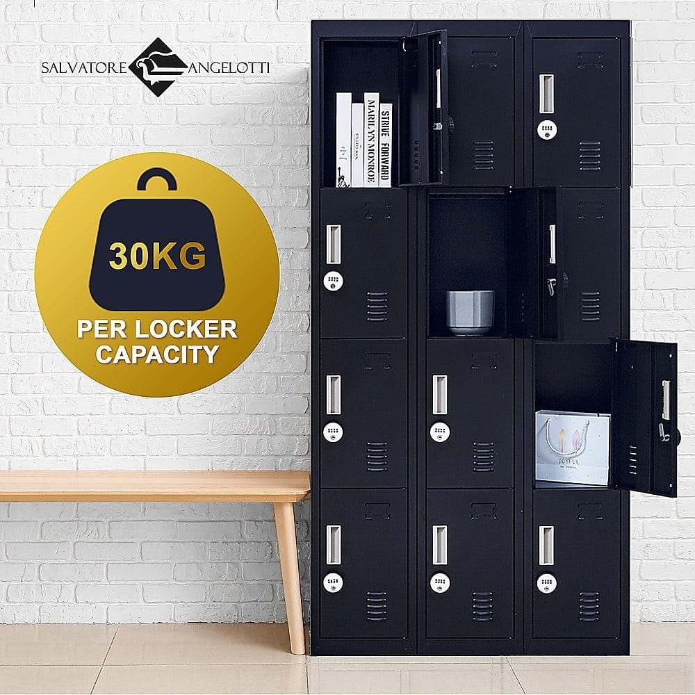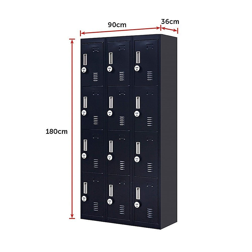 Serrano Australia 12-Door Locker Black 180 x 90 x 36cm Padlock Operated