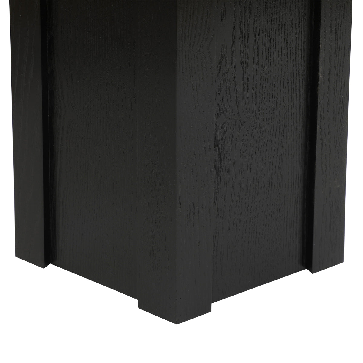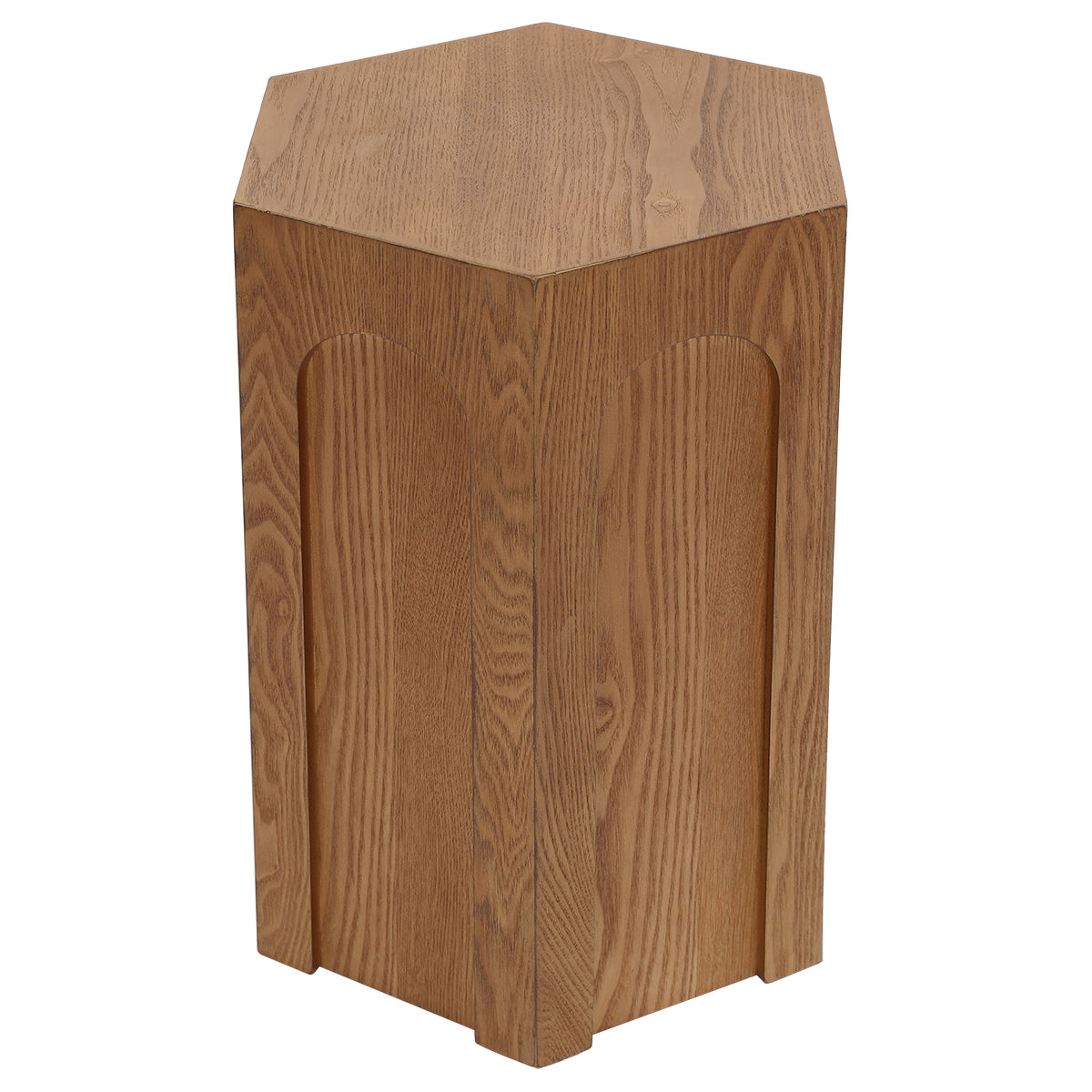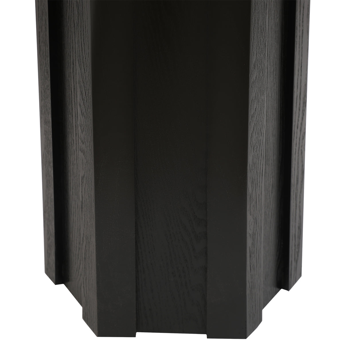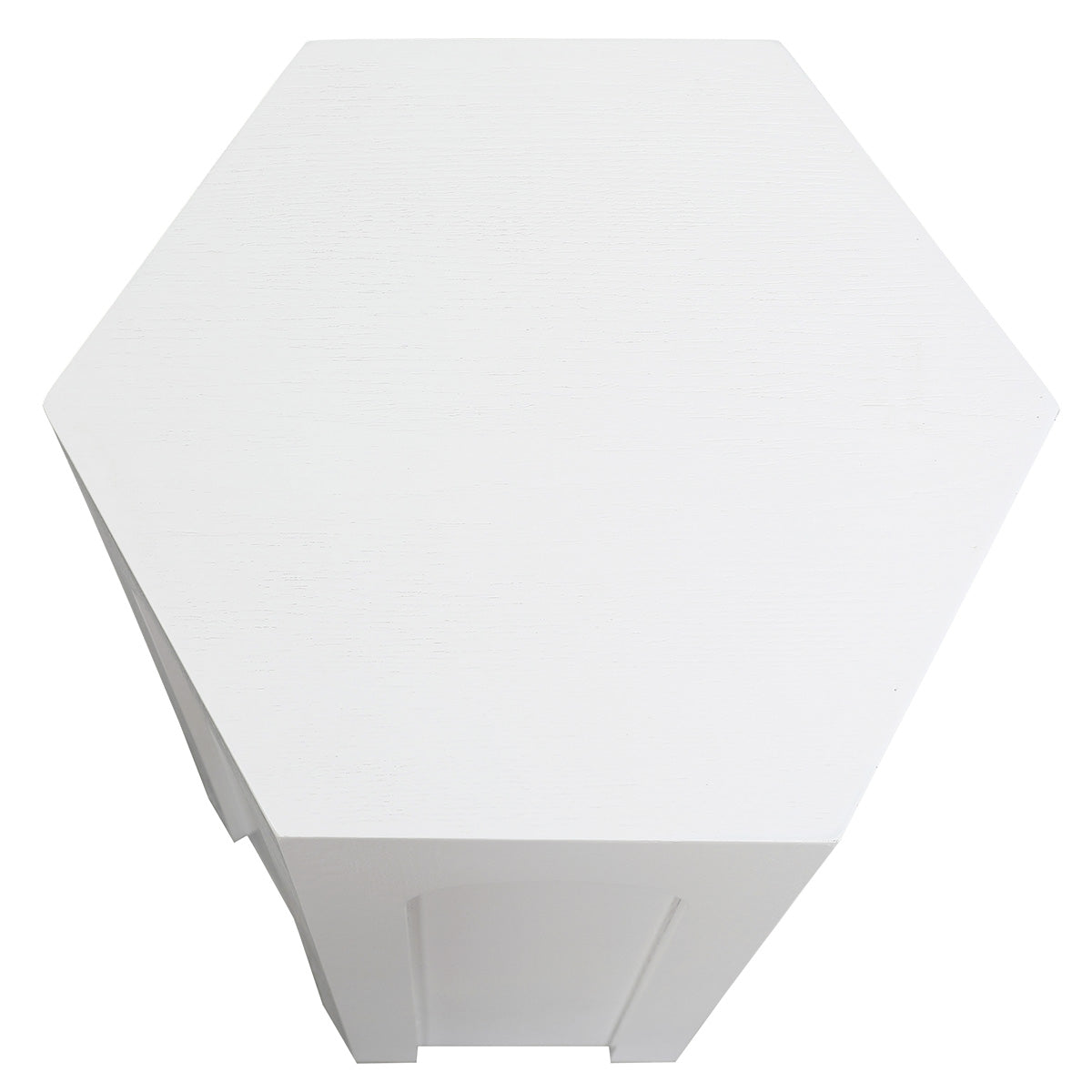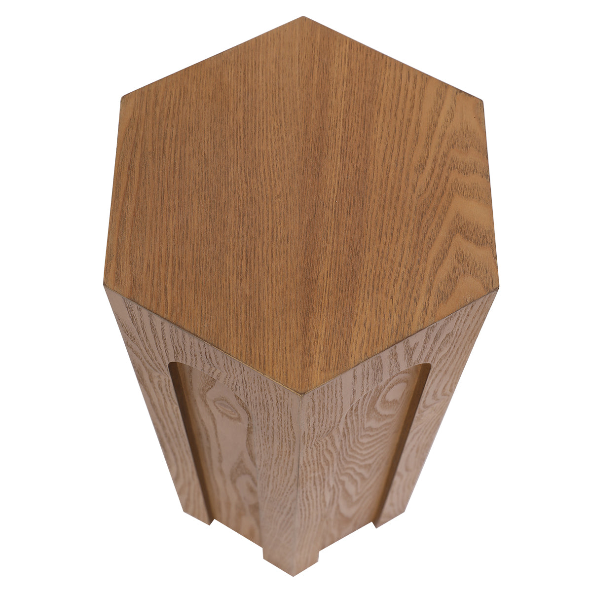 Add a contemporary touch to your living space with this sleek, hexagonal timber side table. Finished in a striking black hue, it features a unique geometric design that combines style and functionality. Perfect for modern interiors, this table serves as a statement piece while providing a versatile surface for decor or practical use. Its natural timber texture adds warmth to any setting, blending seamlessly with various decor styles.