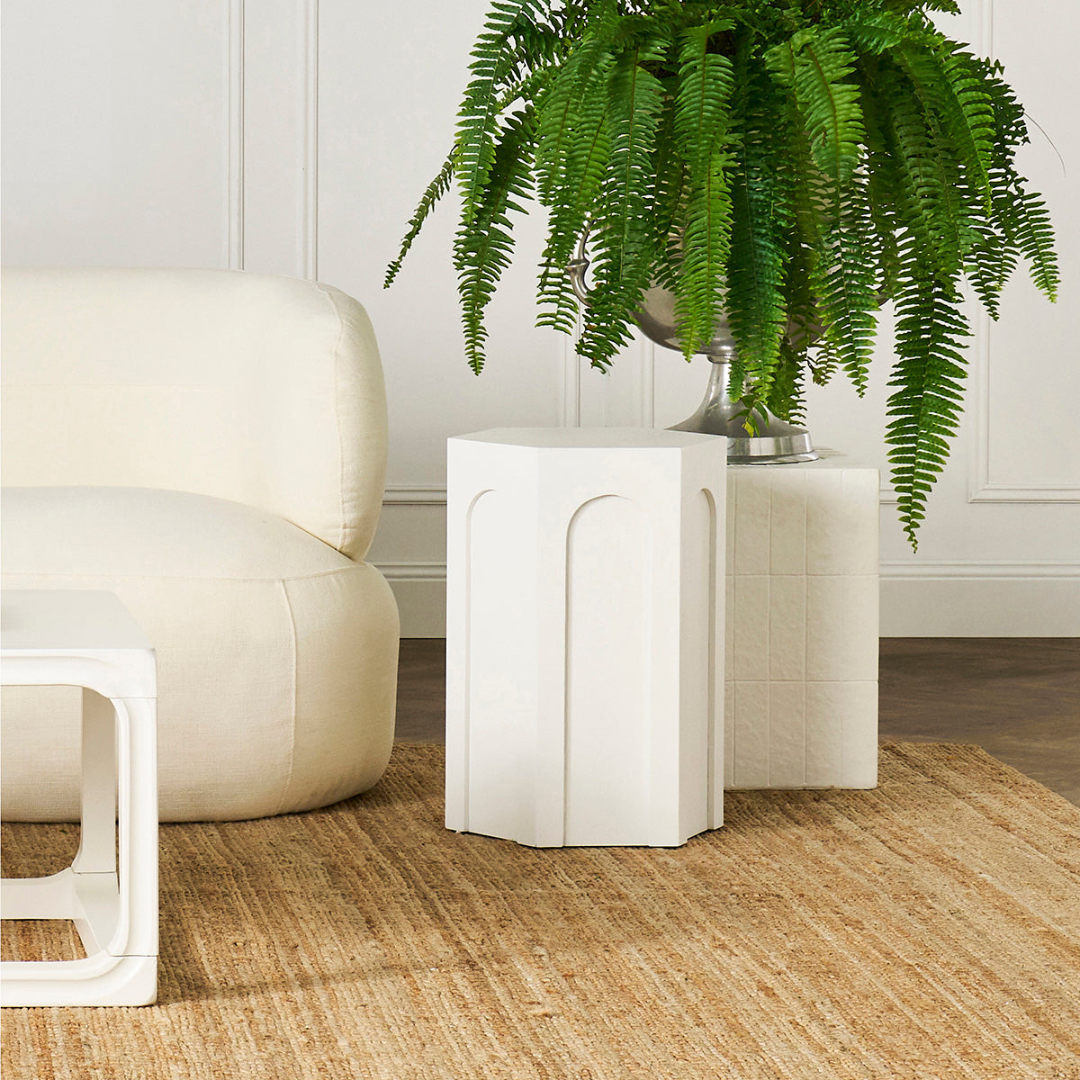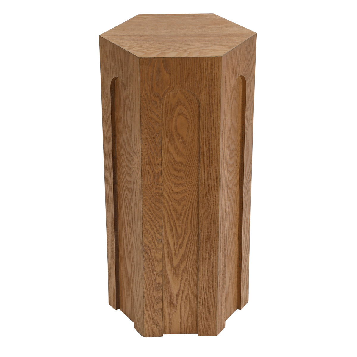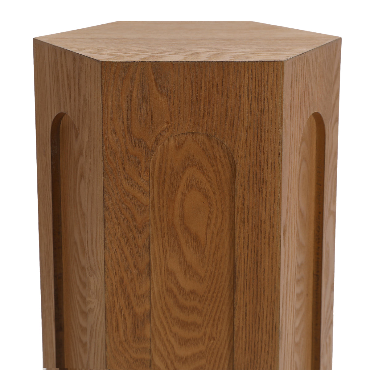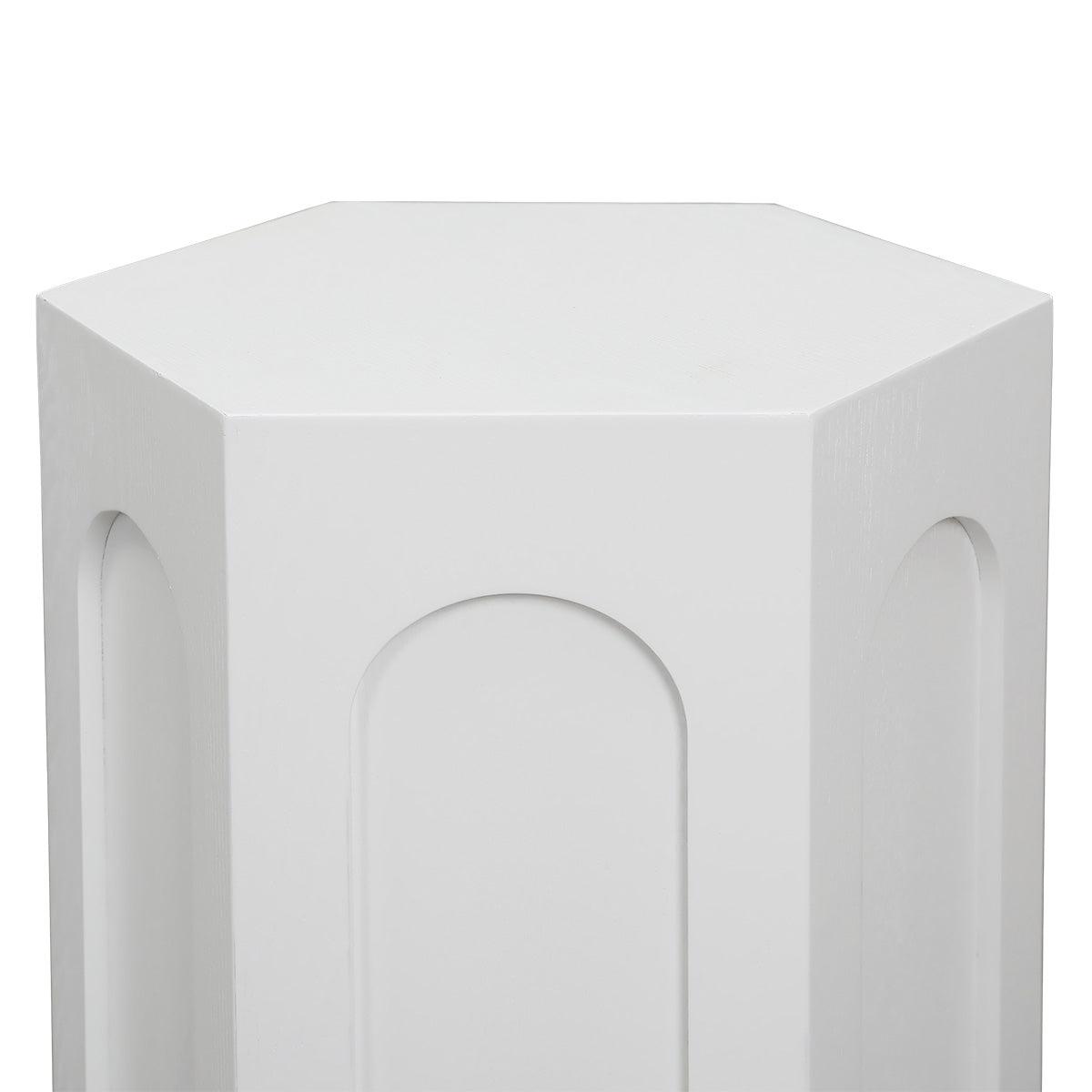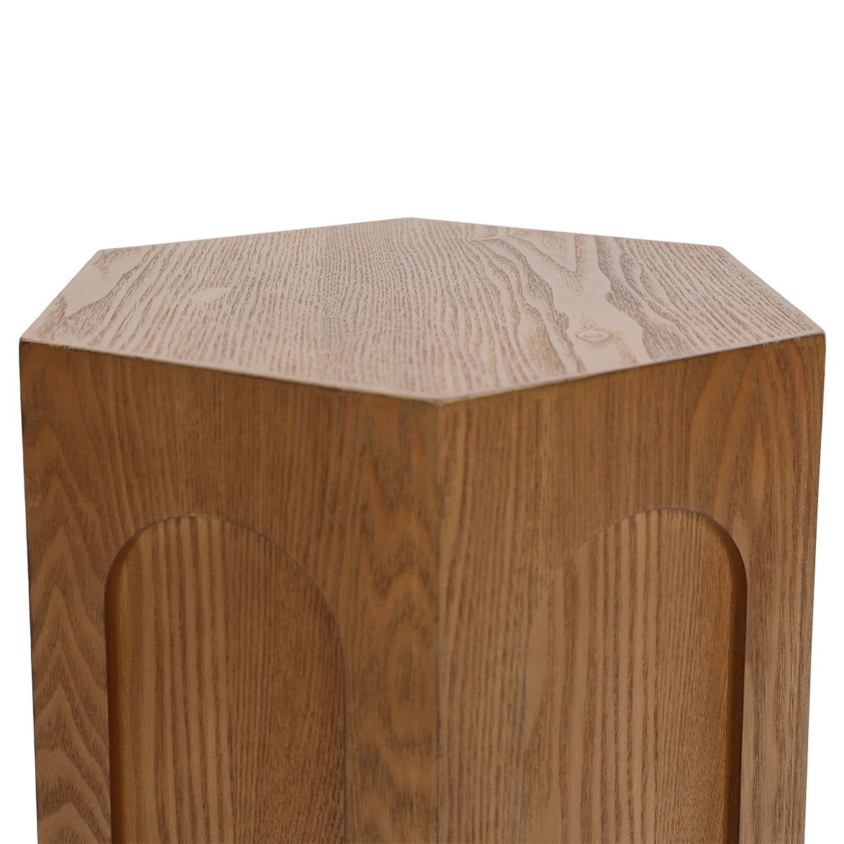 Add a contemporary touch to your living space with this sleek, hexagonal timber side table. Finished in a striking black hue, it features a unique geometric design that combines style and functionality. Perfect for modern interiors, this table serves as a statement piece while providing a versatile surface for decor or practical use. Its natural timber texture adds warmth to any setting, blending seamlessly with various decor styles.