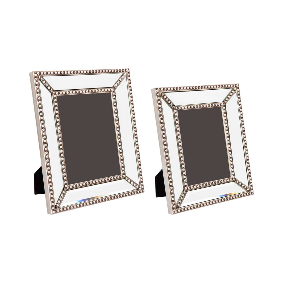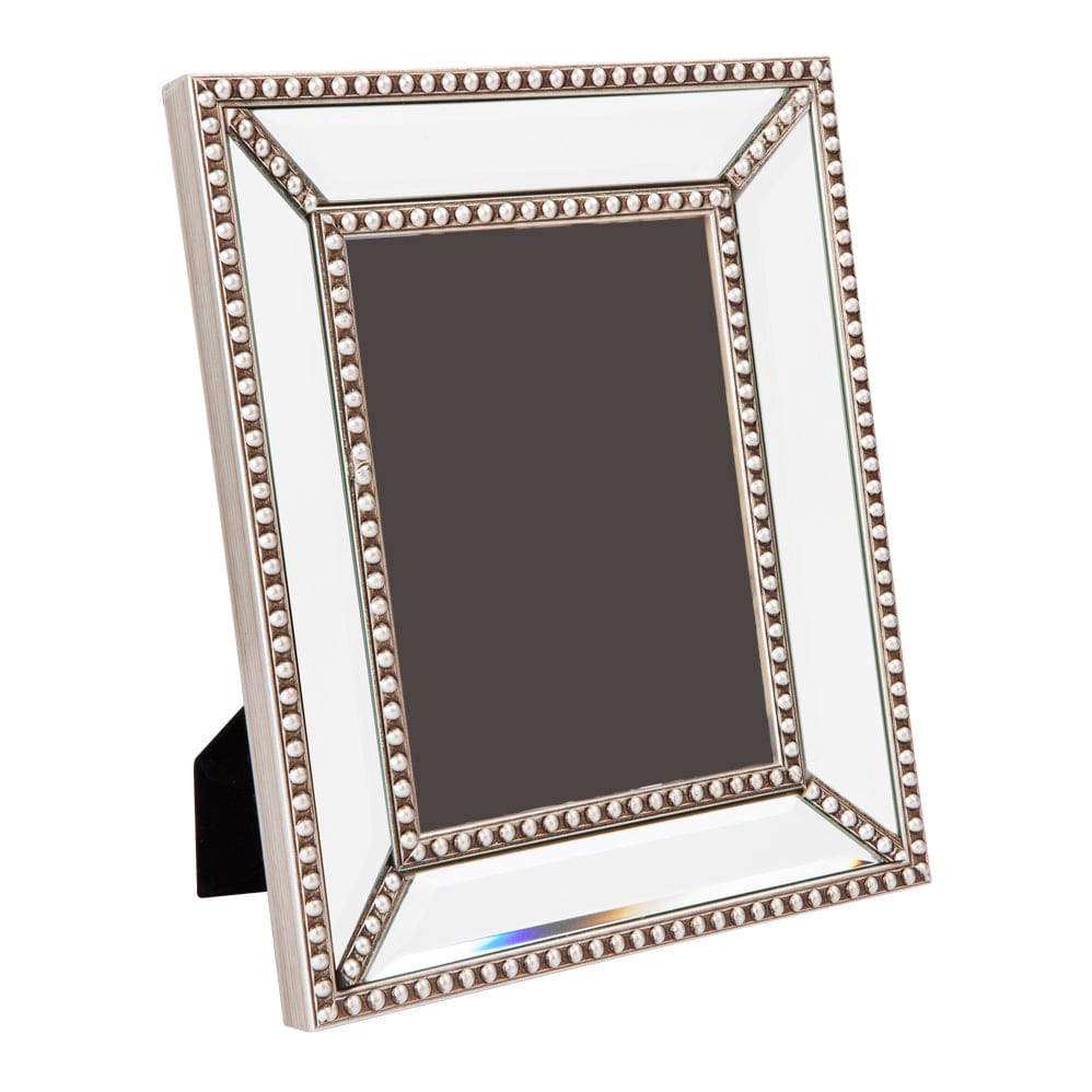 Enhance your cherished memories with the timeless elegance of the Zeta mirrored photo frame. Designed with intricate antique silver bead detailing, this frame adds a refined touch to any interior. Its mirrored surround enhances light and depth, making your photos stand out beautifully. Versatile in design, it can be displayed either horizontally or vertically to suit your preferred style and setting. Ideal for family portraits, special moments, or keepsake prints, the Zeta frame is a sophisticated way to showcase what matters most. Whether styled alone or paired with other frames, it makes a stunning decorative accent in any room.